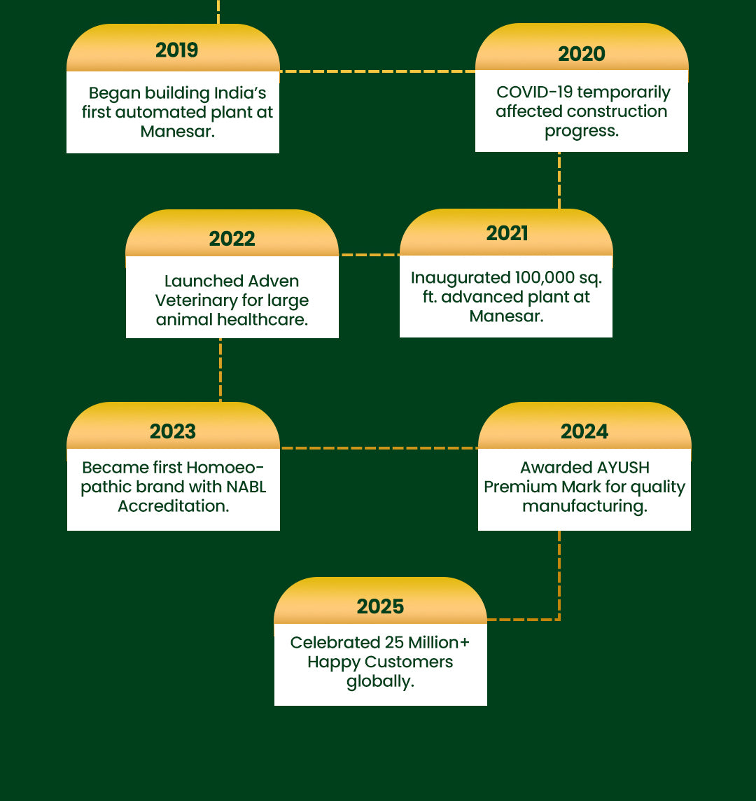 At Adven, we do more than follow the industry standard, we set it. Unlike most, we manufacture our own back potencies from scratch, a rare capability among private homoeopathic companies in India.
