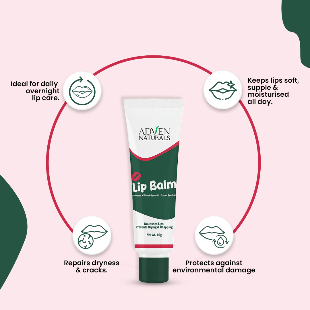 Give your lips the ultimate care they deserve with Adven Naturals Lip Balm — a perfect blend of nature and nourishment. Infused with rich botanical oils and antioxidants, it restores softness, repairs cracks, and protects against dryness and environmental damage. Its smooth, non-greasy texture glides effortlessly, keeping lips hydrated, supple, and naturally radiant all day long. Whether it’s winter dryness or sun exposure, this everyday lip essential provides lasting comfort and care for irresistibly soft lips.