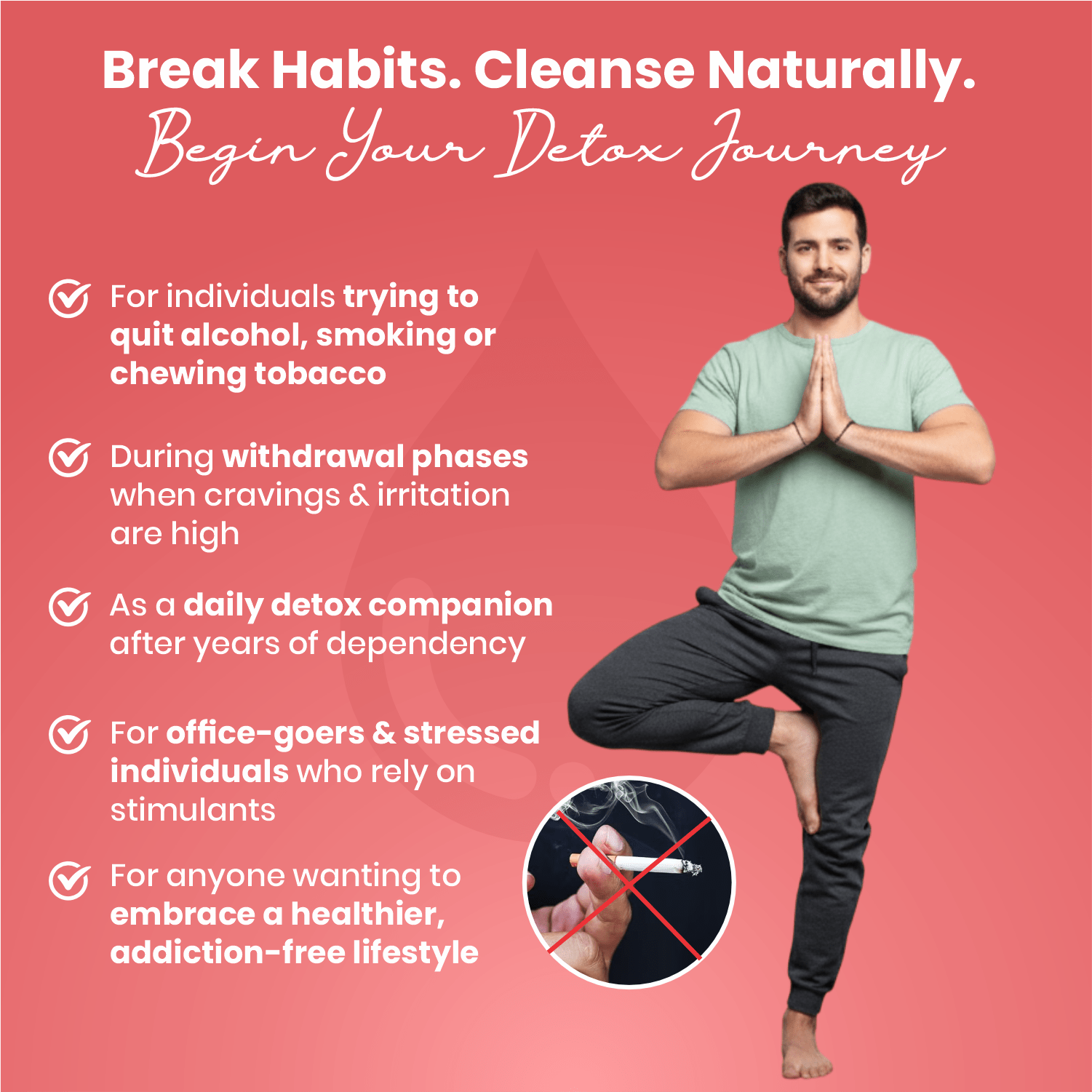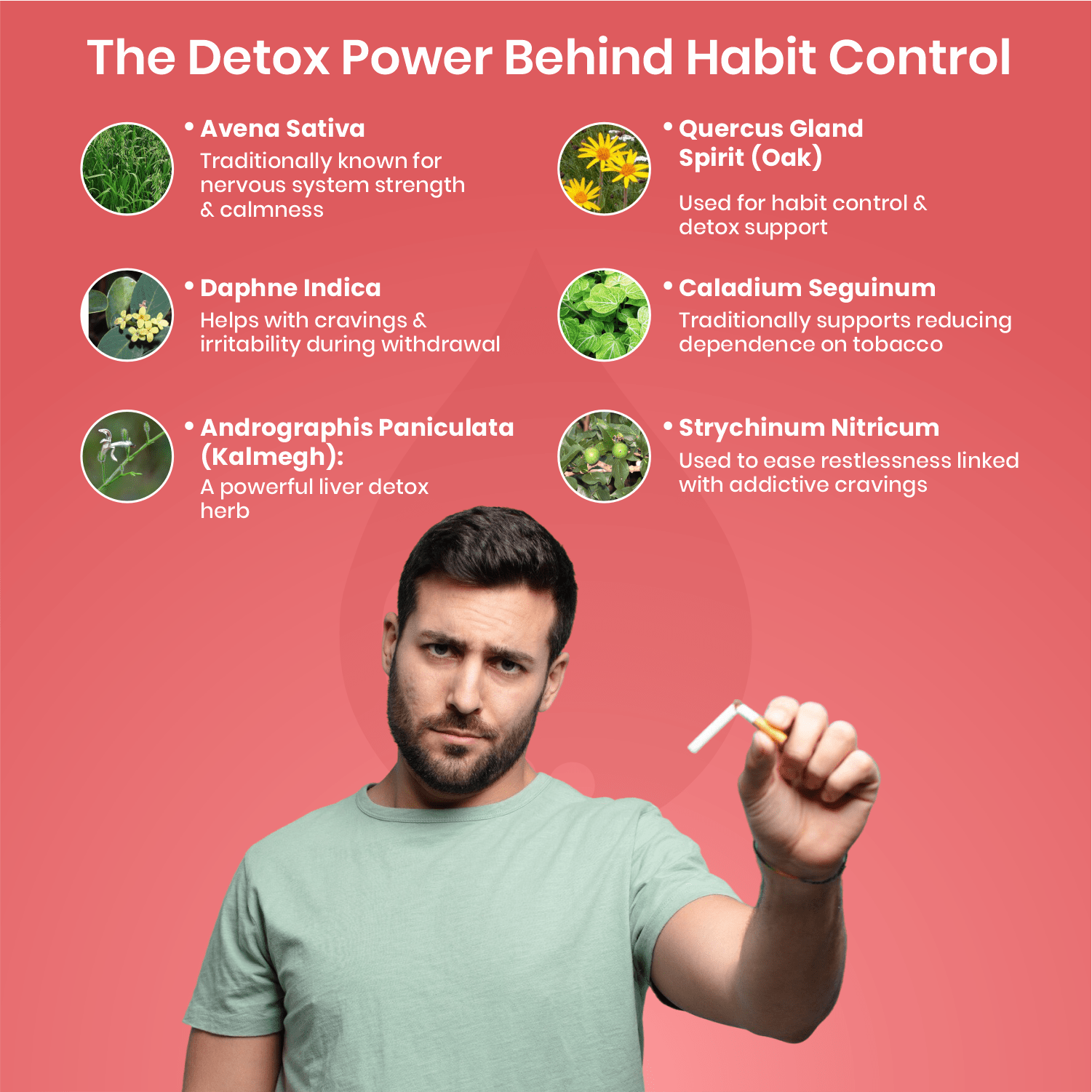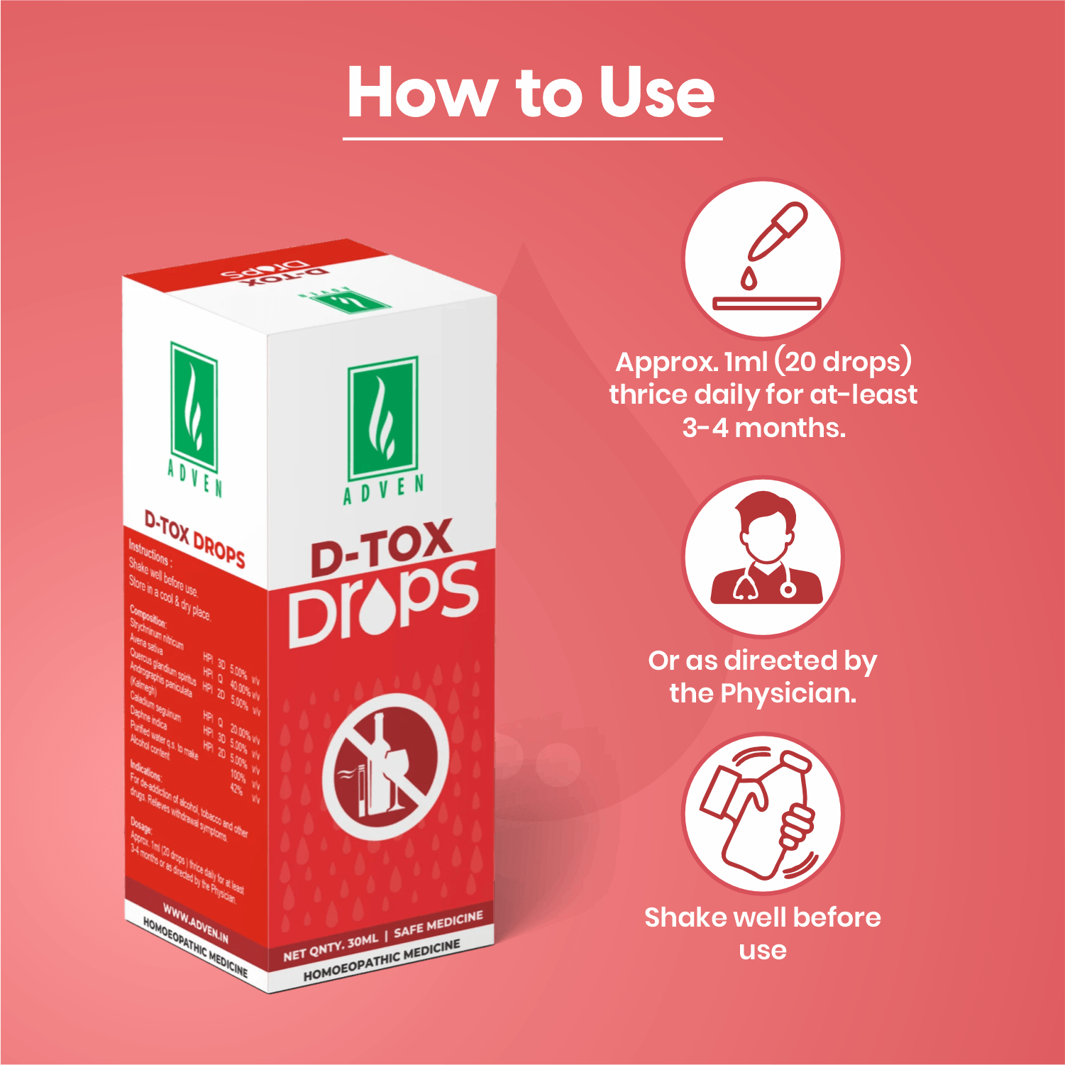 D TOX Drops is a homoeopathic formulation designed to aid in reducing addiction to alcohol and tobacco.