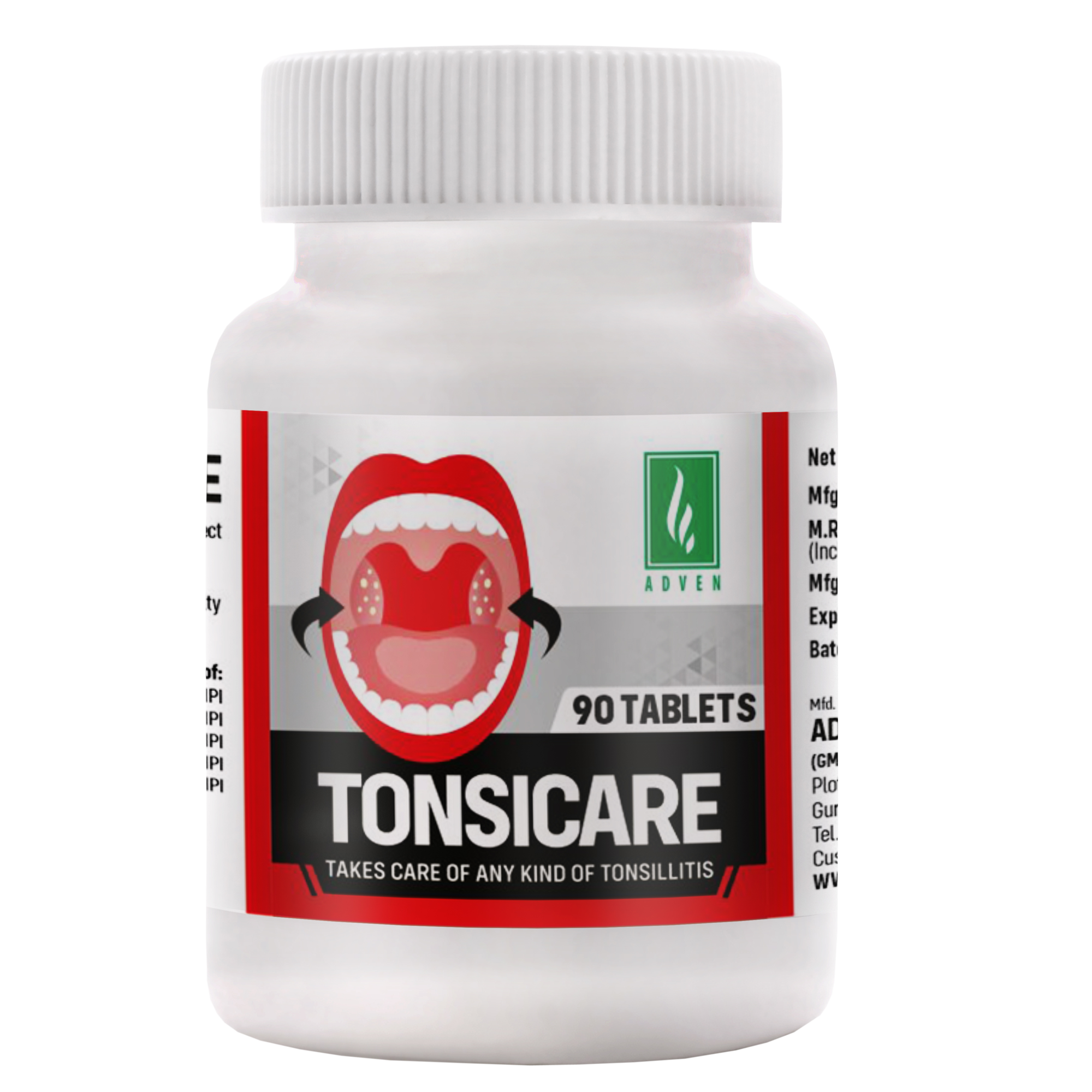Adven’s Tonsicare tablets are formulated to help relieve symptoms associated with tonsillitis, including sore throat, difficulty swallowing, swollen tonsils, and tender lymph nodes. These tablets are effective for both acute and chronic tonsillitis, providing relief from inflammation and infection in the tonsils.