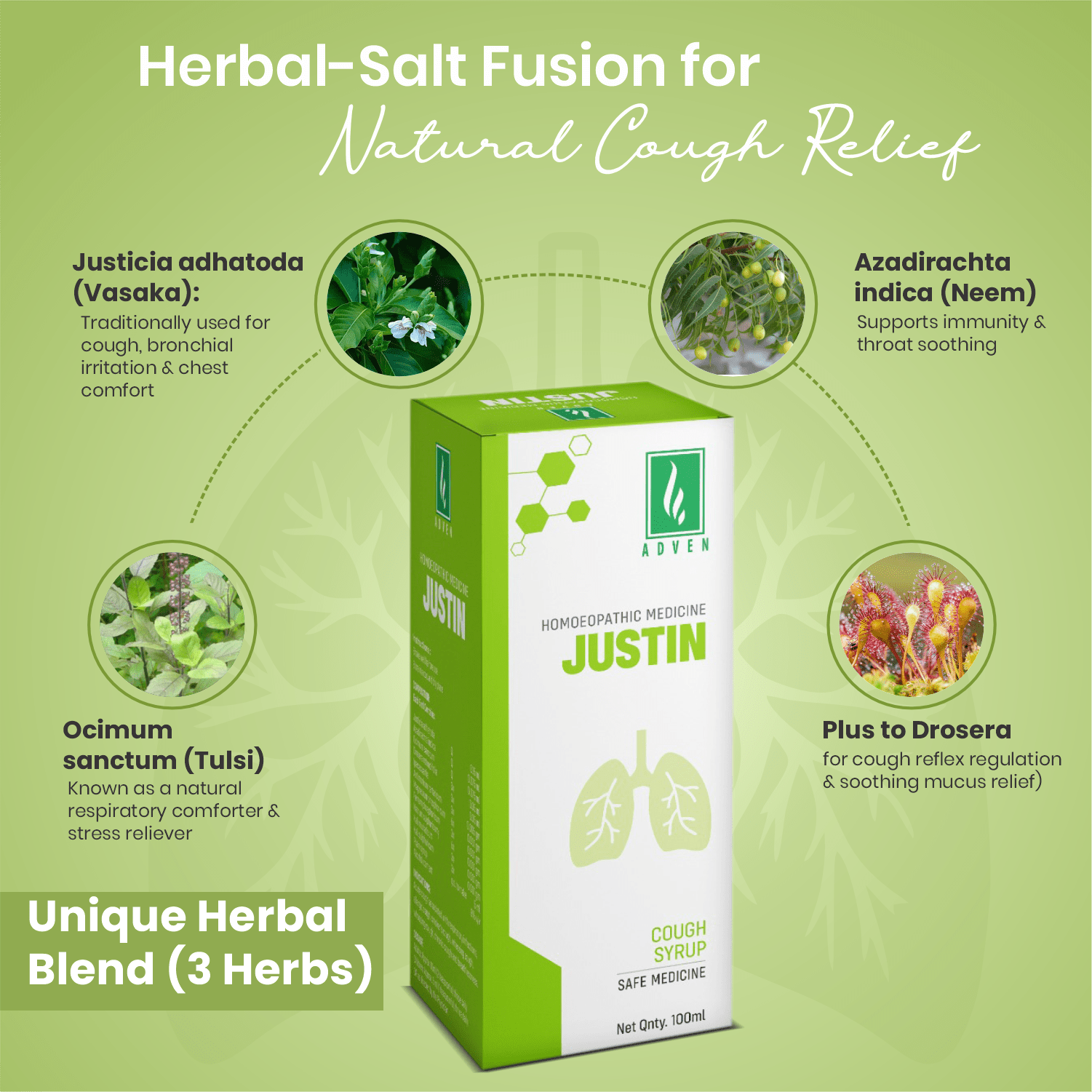 Experience the most effective cough syrup, crafted with a balanced blend of indigenous and exotic herbs. It offers relief from bronchitis, whooping cough, and smoker’s cough without causing drowsiness.